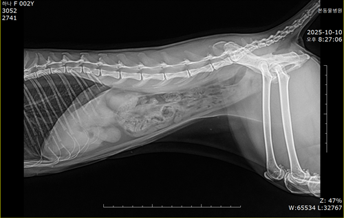 10월 10일 포도를 토해논후로 식욕저하 기력저하가 있어서 동물병원에 방문해서 엑스레이를 찍었는데 우선 지켜보자는 말과 소화제처방과 주사를 맞고 집왔습니다 그 후로도 안먹어서 12일에 동물병원에가서 혈액검사도 하고 수액도 맞았습니다 췌장쪽 수치가 좀 높아서 췌장쪽만 다시 검사했는데 수치는 괜찮았습니다 식욕촉진이랑 소화제처방 받아서 먹이는데 식욕저하도 여전하고 기력이 좀 없고 10일부터 14일까지 대변을 못보고있어서 14일에 병원에 가서 엑스레이랑 초음파를 했는데 장폐색일수도 있다는 말을 들었습니다 초음파상으로는 소장쪽 이물이 의심된다고 하셨어요ㅠ