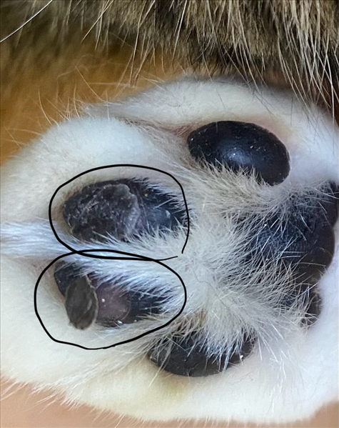 안녕하세요 고양이가 신나게 뛰어놀고난 후 발에 뭐가 붙은거 같아 살짝 띠어줬는데도 있길래 자세히 보니 두 뒷발바닥 젤리들이 이렇게 까져있습니다.. 계속 잘 뛰어놀고 만져도 특별히 아픈것 같지는 않은데 그대로 두면 자가치유가 될까요? 아니면 넥카라를 하고 마데카솔 같은 연고를 바르고 며칠동안 붕대를 감아놔야할까요?