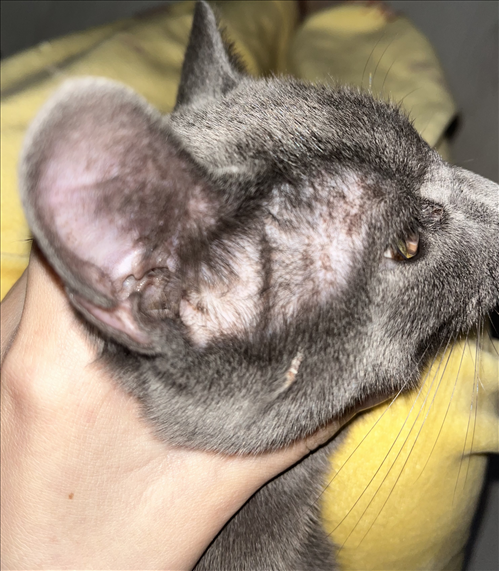 고양이 피부 왜이런건가요? 귀쪽은 가끔 건조해서 긁는건줄 알았는데 이렇게 심하게 되어있는줄 몰랐어요 그리고 다리쪽에 딱지가 앉았는데 피부병인가요?