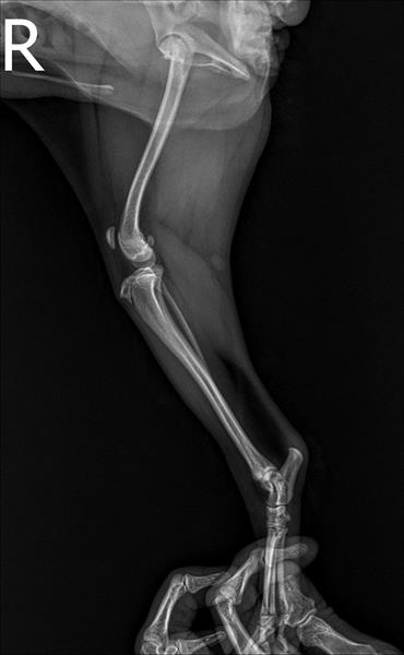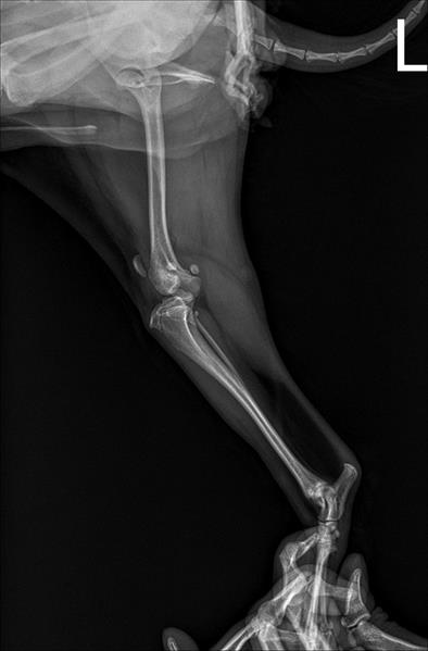 엑스레이 사진으로만 봤을 때, 슬개골 탈구 4기와 대퇴골·경골의 각변형이 보입니다.