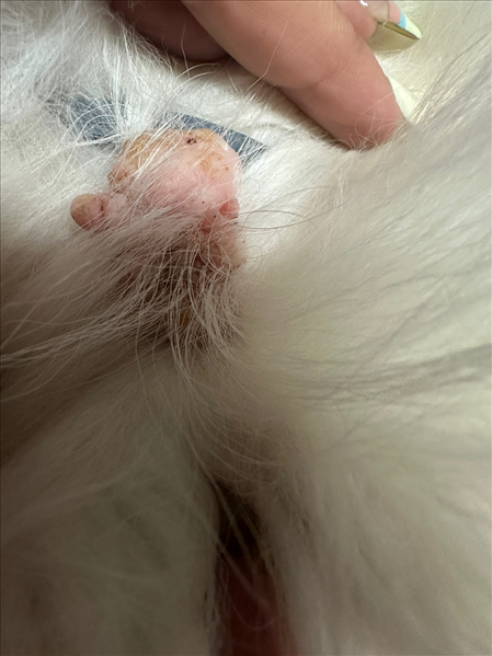사진과 설명으로 봤을 때, 피부 종양이 가장 가능성이 높습니다.