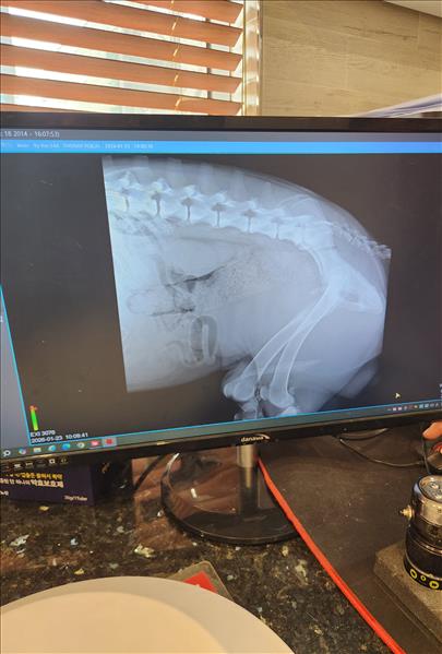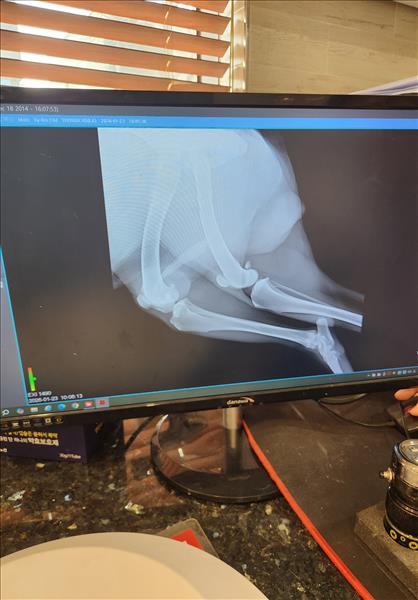 한달전에 자전거 산책이후 몇일후에 다리가 불편해 보여서 병원가서 소염진통제 처방받아서 먹이고 난뒤 몇일뒤 다리를 들기시작해서 병원가서 엑스레이도 찍었습니다. 지금 총기간이 한달정도 되었구요 미국 아키다 입니다. 체중은 40키로 정도이고요. 나이는 8.5살 정도 되는 수컷입니다. 왼쪽 다리입니다.