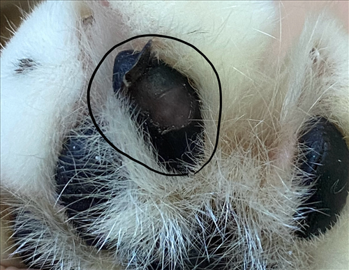 | 252 | 고양이 발바닥 종양? 염증같은 것 |