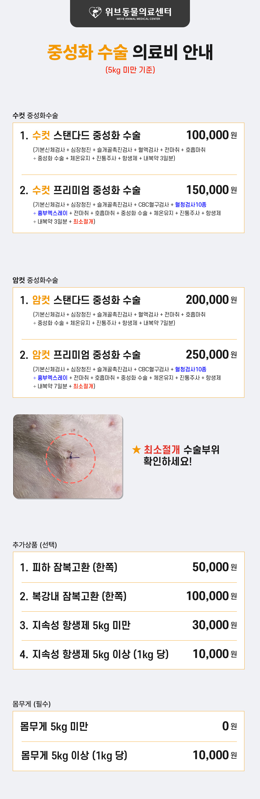 게시된 가격과 프로세스는 일반적인 상태의 반려동물 기준으로 안내된 내용이며,
